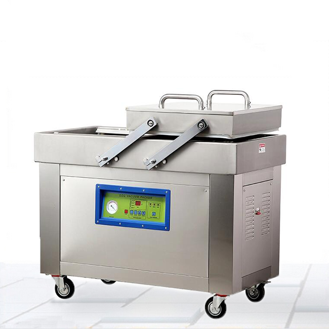 上海工廠生產(chǎn)小型真空包裝機(jī)是有兩個(gè)真空室可以輪換使用,一個(gè)真空室抽真空的時(shí)候,另外一個(gè)真空室可以擺放產(chǎn)品;產(chǎn)品擺放結(jié)束,真空過程也完成了,所以省略了等待時(shí)間,工作效率是臺(tái)式真空包裝機(jī)的1.5倍,當(dāng)然價(jià)格也高于臺(tái)式真空包裝機(jī)。
