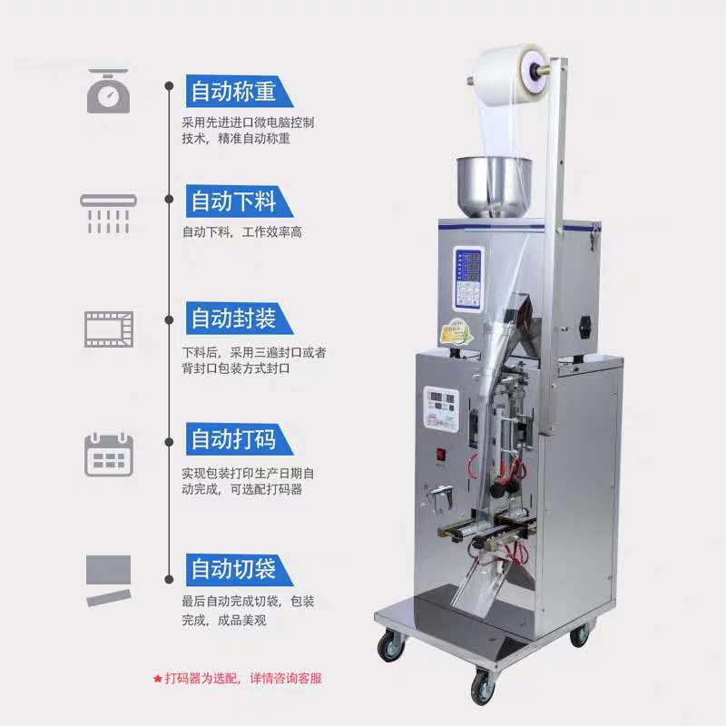 7.彩色觸摸屏和穩(wěn)定可靠的雙軸高精度輸出的PLC控制,制袋、計(jì)量、充填、封合、打碼、切袋一次完成.